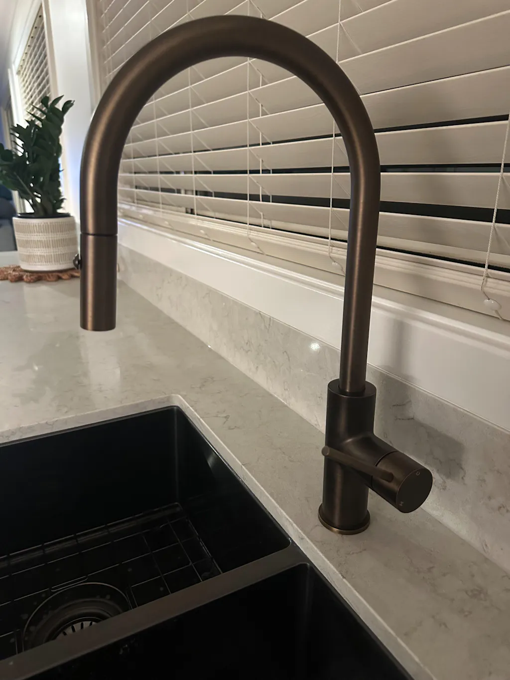 The Haven Gooseneck Pull Out Mixer in Antique Brass is designed to bring ease, flexibility, and style into your kitchen or laundry. Its elegant curve and concealed pull-out hose give you reach and control, without interrupting the silhouette. 360° swivel function allows smooth, controlled movement across the sink.